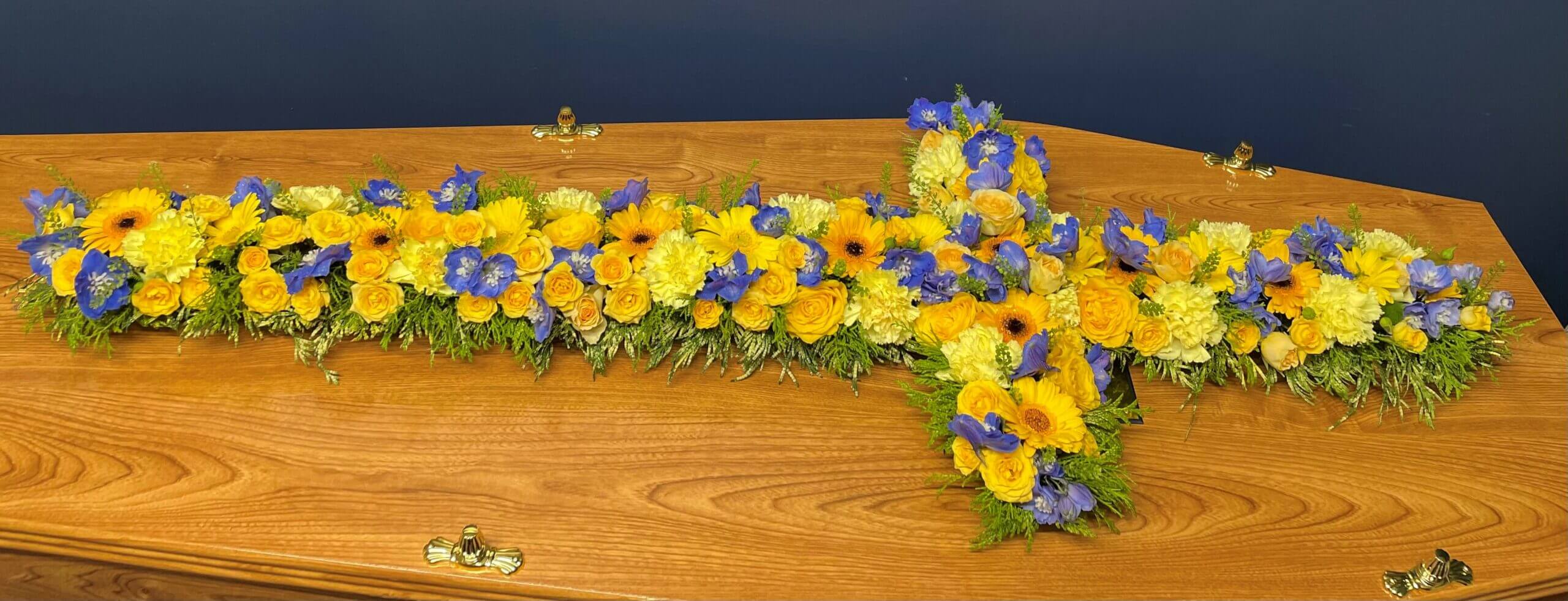 - Casket sprays: These funeral flowers are usually placed directly on top of the coffin, hence the name.