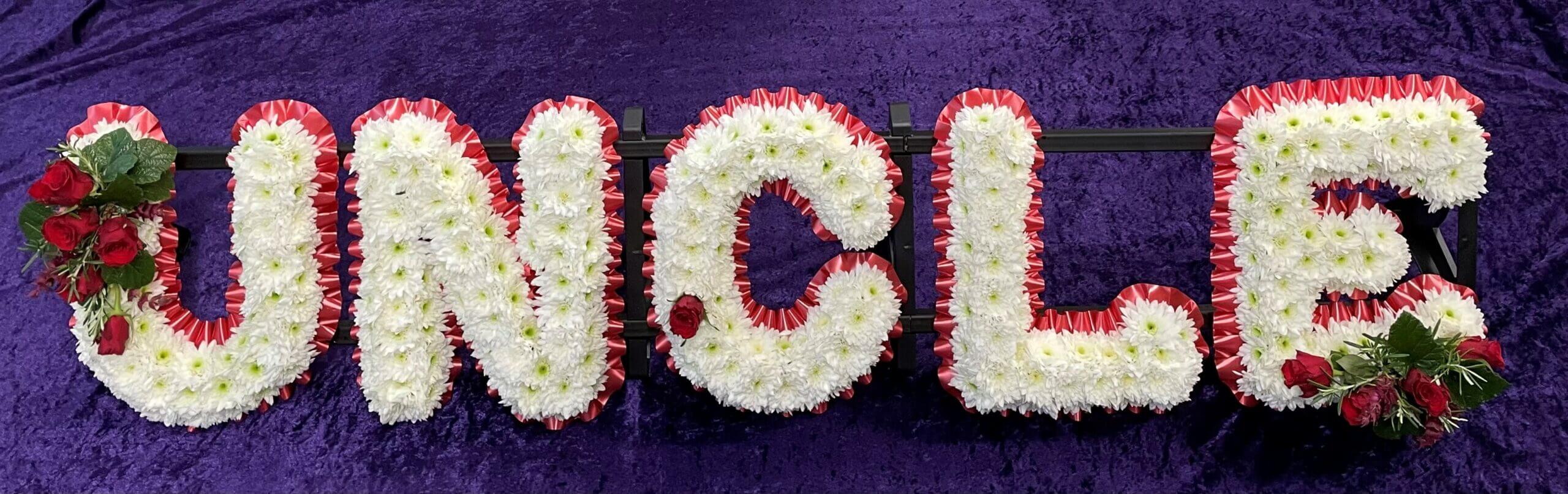 - Letter tributes: These funeral letters are popular and can be used to spell out any word you like, from their name to family titles, like Mum or Dad, etc. These are the perfect accompaniment for the coffin in the hearse.